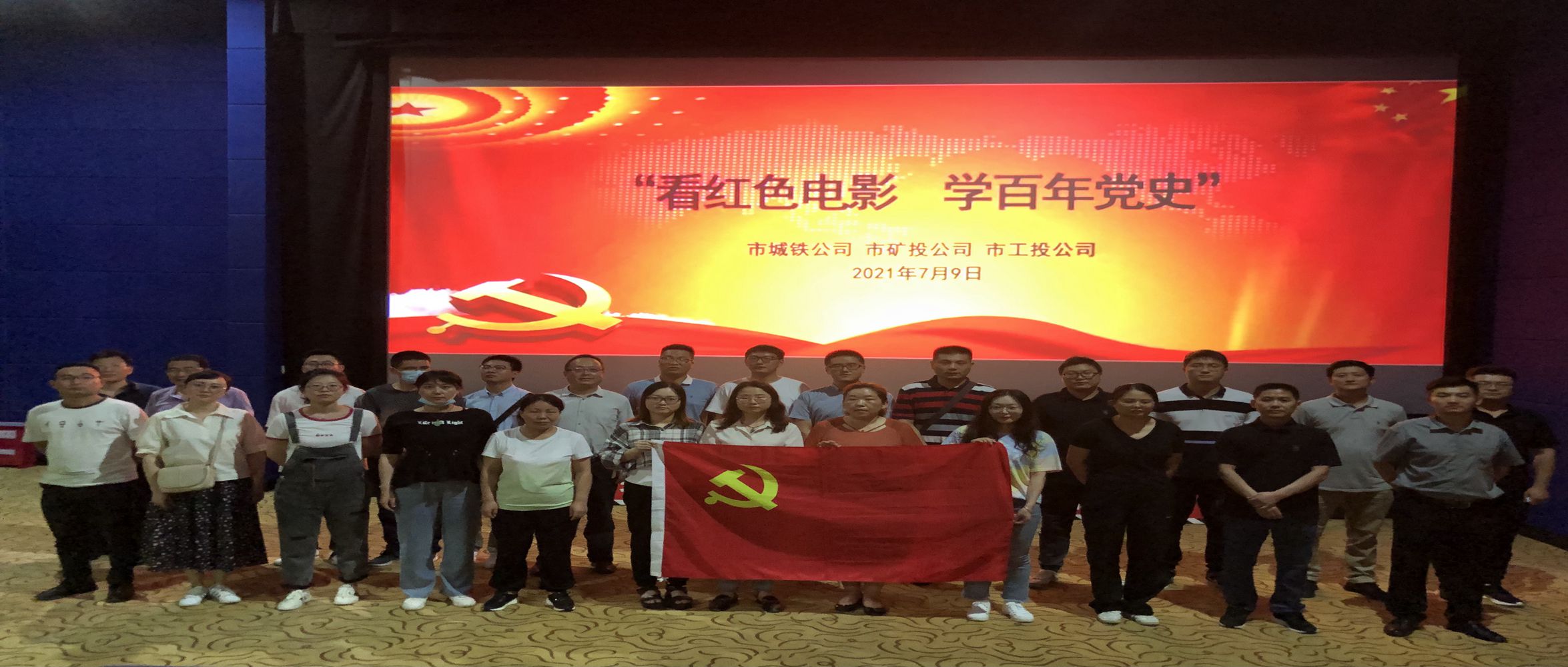 為深入學(xué)習(xí)宣傳貫徹習(xí)近平總書記“七一”重要講話精神,大力宣傳偉大的建黨精神,教育引導(dǎo)公司黨員干部不忘初心、牢記使命,以史為鑒、開創(chuàng)未來,進(jìn)一步推進(jìn)黨史學(xué)習(xí)教育走深走實(shí),7月9日,市礦投公司聯(lián)合市城鐵公司、市工投公司組織公司黨員干部群眾觀看建黨百年獻(xiàn)禮影片《革命者》。