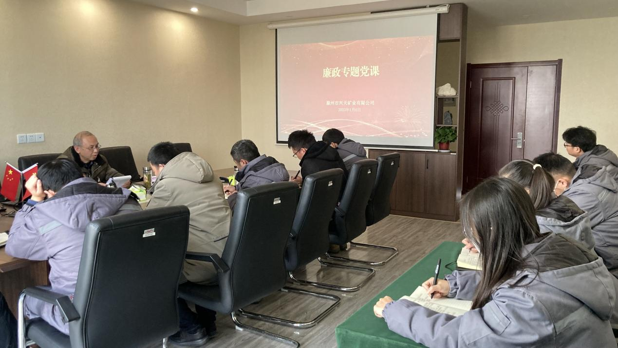 為進(jìn)一步強化黨風(fēng)廉政建設(shè),打好拒腐防變“預(yù)防針”,1月6日,市礦投集團(tuán)黨委委員、駐市礦投集團(tuán)紀(jì)檢監(jiān)察組組長芮金保赴興天礦業(yè),召開廉政教育專題講座,興天礦業(yè)黨支部書記肖波及公司全體干部職工參加。