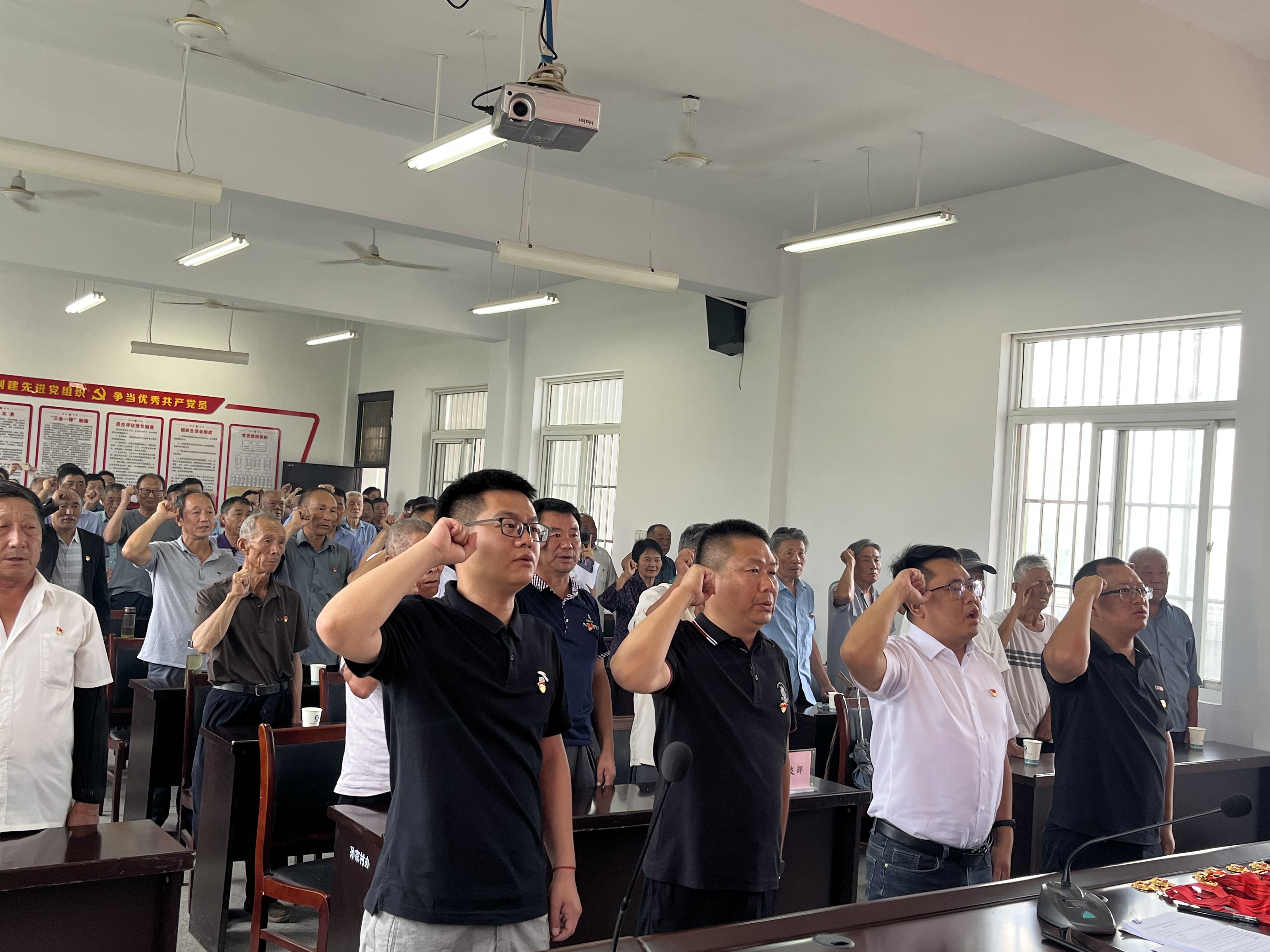 全體黨員緊握右拳,面向鮮紅的黨旗重溫了入黨誓詞;在全體黨員的見證下,孫家村黨總支書記趙陽、興全礦業(yè)黨支部副書記許登科向7位老黨員同志頒發(fā)了“光榮在黨50周年”紀念章,激勵廣大黨員進一步堅定對黨的忠誠熱愛和為共產(chǎn)主義事業(yè)奮斗終身的理想信念。