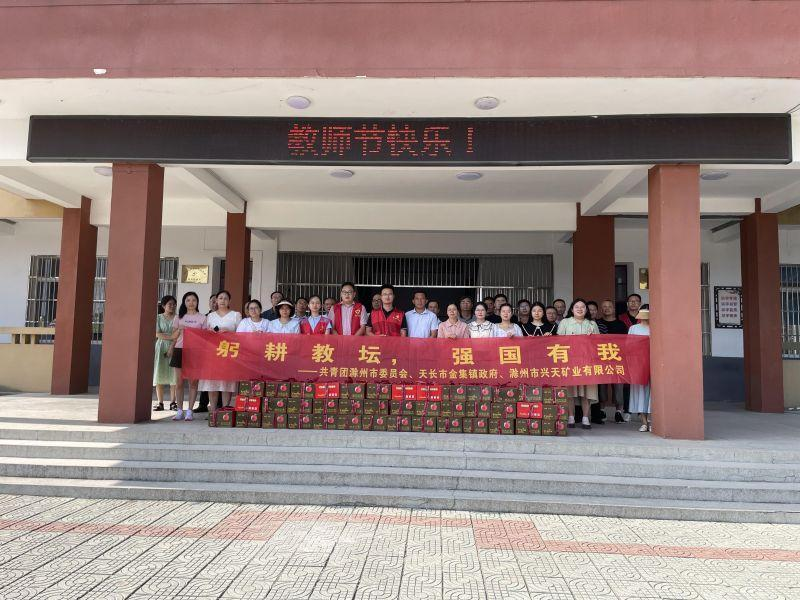 在第39個(gè)教師節(jié)即將到來(lái)之際,9月8日,興天礦業(yè)黨支部與共青團(tuán)滁州市委員會(huì)、天長(zhǎng)市金集鎮(zhèn)政府先后前往金集小學(xué)、天長(zhǎng)市諭興九年制學(xué)校開(kāi)展慰問(wèn)活動(dòng)。