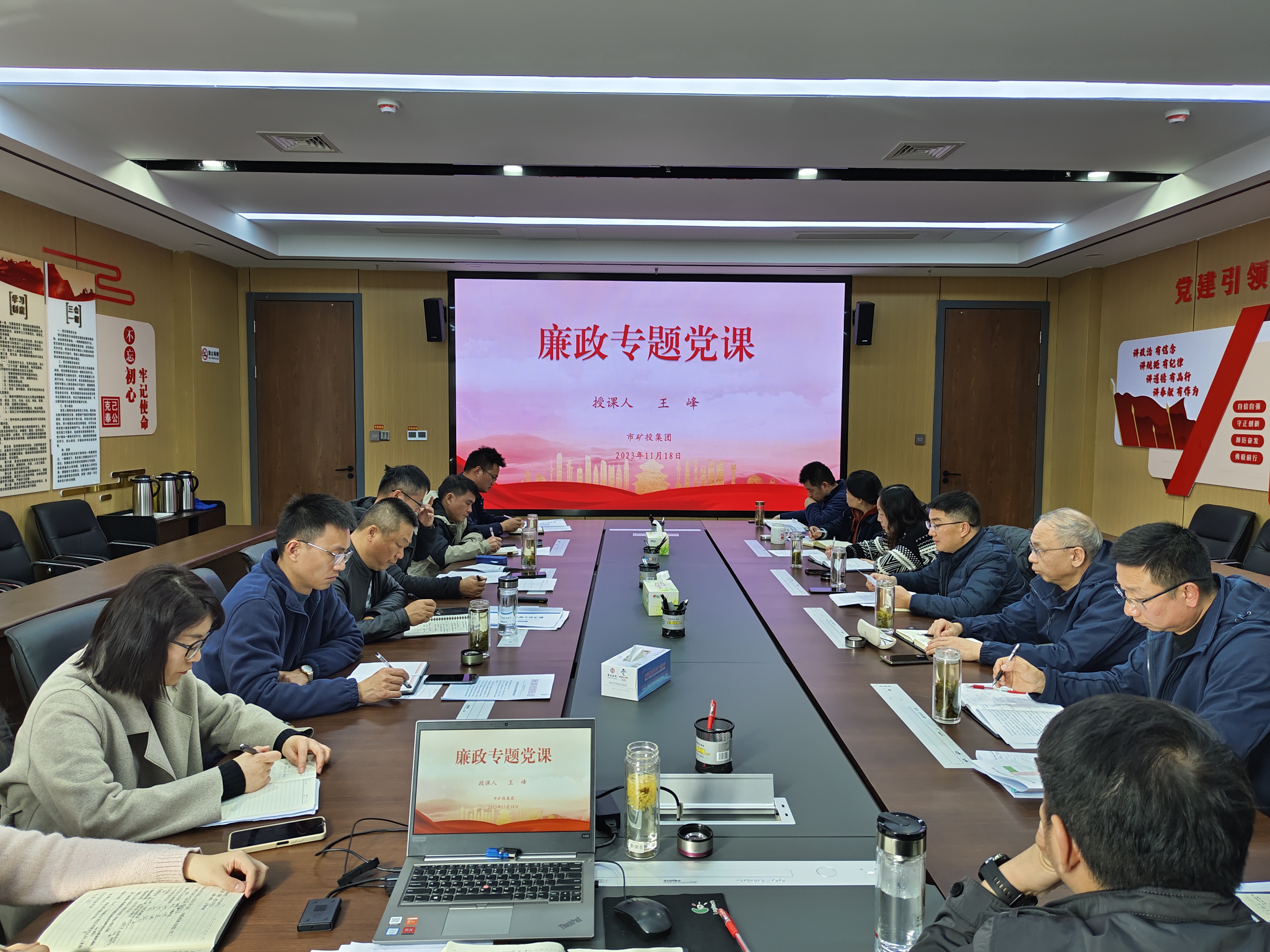 為深入貫徹落實全面從嚴(yán)治黨要求,進一步加強集團公司黨員廉潔從業(yè)教育,近日,市礦投集團黨委書記王峰講授廉政專題黨課,集團公司中層以上管理人員及各子公司主要負(fù)責(zé)人參加學(xué)習(xí)。