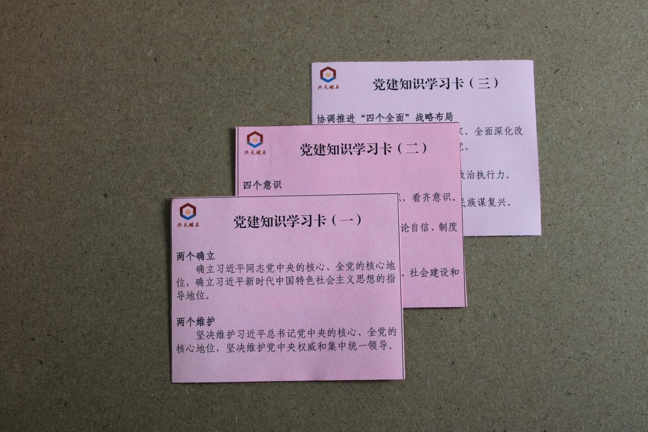 興天礦業(yè)黨支部對各類黨建名詞進行收集整理制作成卡片,在每次周學(xué)習(xí)前進行發(fā)放和學(xué)習(xí),以更直觀、更靈活的方式,幫助大家適時加強學(xué)習(xí)、領(lǐng)會實質(zhì),讓初心在不斷學(xué)習(xí)地過程中更加純粹,讓使命在不斷學(xué)習(xí)地過程中更加堅定。