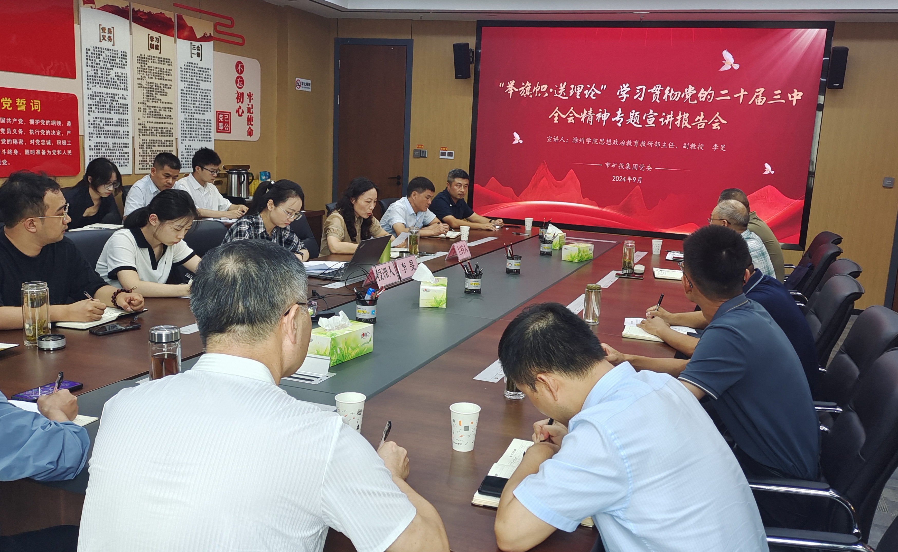 9月14日,“舉旗幟·送理論”學(xué)習(xí)貫徹黨的二十屆三中全會(huì)精神專題宣講活動(dòng)在市礦投集團(tuán)舉行。滁州學(xué)院思想政治教育教研部主任、副教授李旻作專題宣講報(bào)告。市礦投集團(tuán)本部全體干部職工、各子公司負(fù)責(zé)人參加會(huì)議。