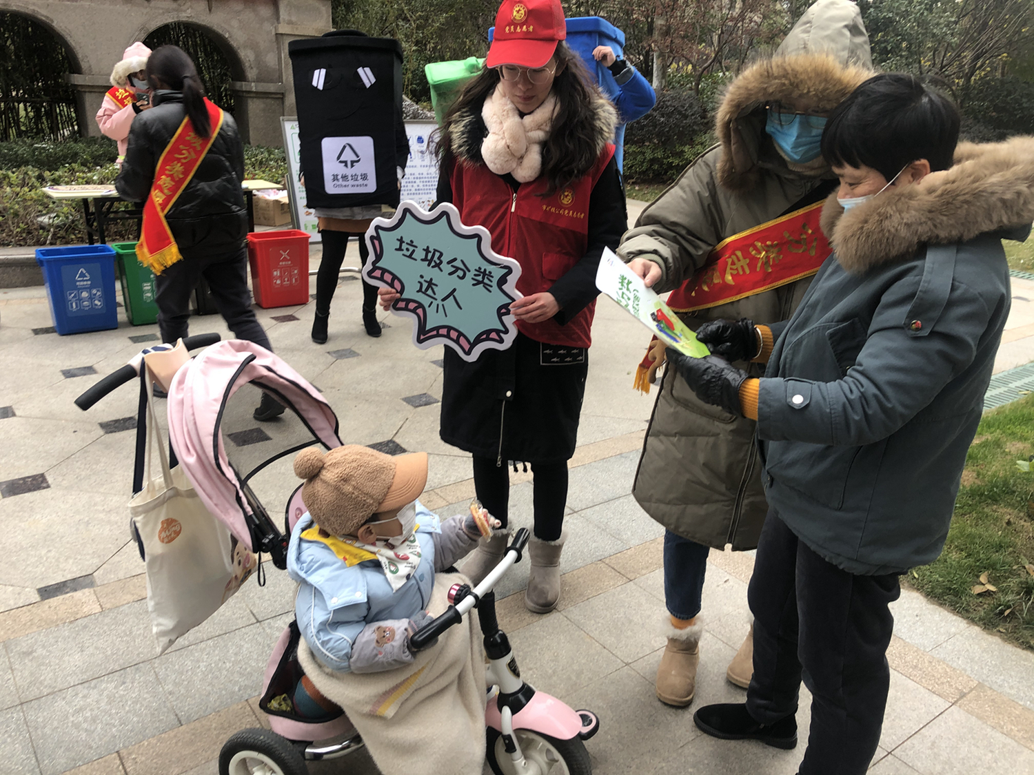 活動(dòng)中,志愿者們身穿“可回收物”、“廚余垃圾”、“有害垃圾”、“其他垃圾”四色玩偶服,通過(guò)向居民發(fā)放宣傳單頁(yè)、開(kāi)展“垃圾分分樂(lè)”、“垃圾分類跳棋”游戲等方式,向其宣傳垃圾分類相關(guān)知識(shí)?;顒?dòng)現(xiàn)場(chǎng)氣氛火熱,社區(qū)居民不畏嚴(yán)寒,紛紛從家中拿出廢舊電池、舊水銀溫度計(jì)等有害垃圾換取垃圾袋。