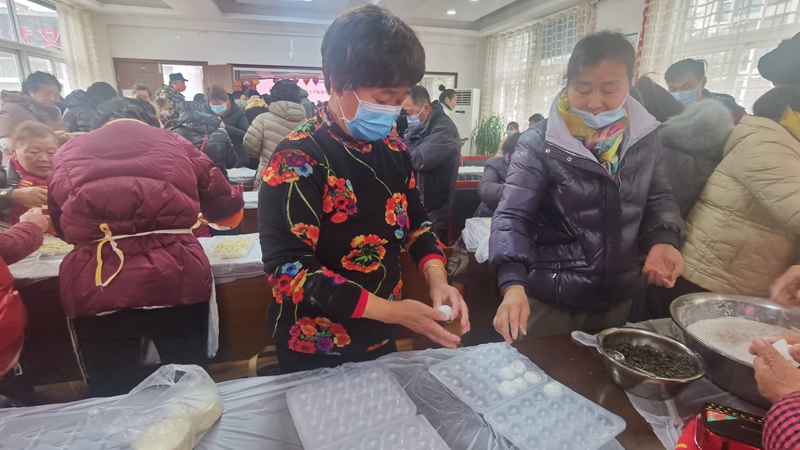 演出結(jié)束后,志愿者與社區(qū)特扶家庭一起動(dòng)手包餃子、包湯圓,當(dāng)志愿者們把充滿美好寓意的熱騰騰的湯圓送到居民手里,大家都露出開心歡樂的笑容。