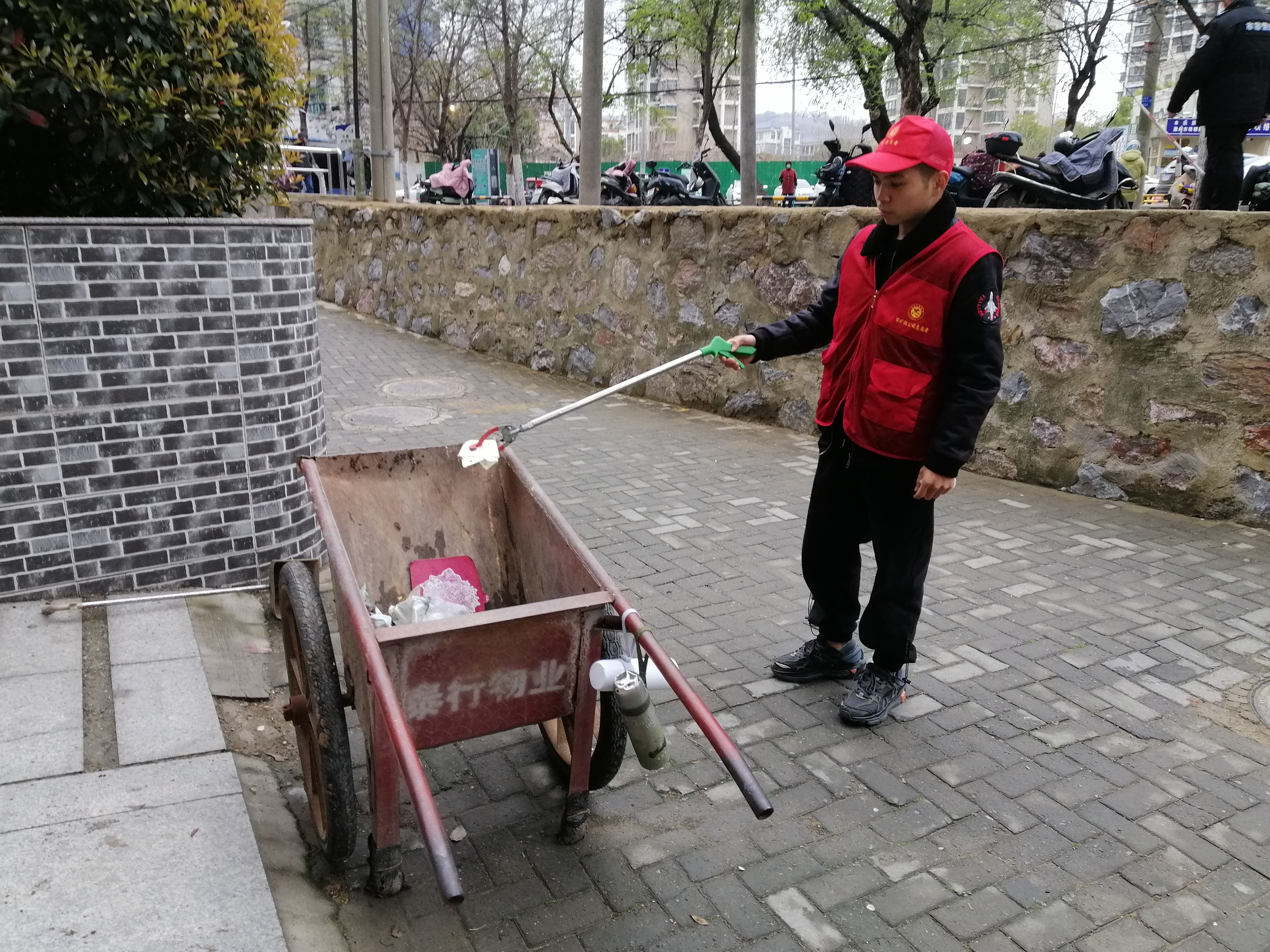 志愿者們冒著蒙蒙細雨對社區(qū)內(nèi)的垃圾進行集中清掃、清理樓道內(nèi)牛皮癬小廣告、規(guī)整車輛停放,引導社區(qū)群眾自覺養(yǎng)成文明習慣、提升文明素養(yǎng)、做文明市民。