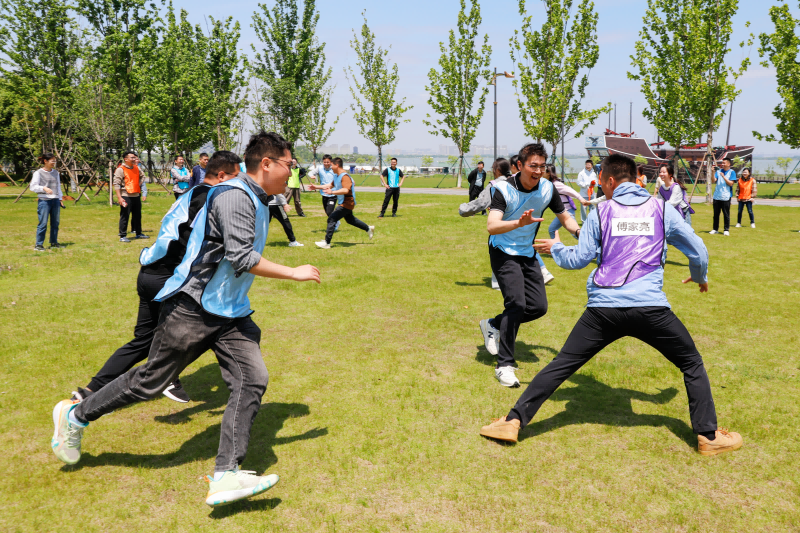 撕名牌大戰(zhàn)。在寬闊的草坪上,參賽選手們相互追逐,手腳并用撕下對手背后的名牌?,F(xiàn)場成功撕下名牌的歡呼聲、加油鼓勁的吶喊聲此起彼伏,展現(xiàn)了參賽隊員的頑強拼搏精神和積極進取的斗志。