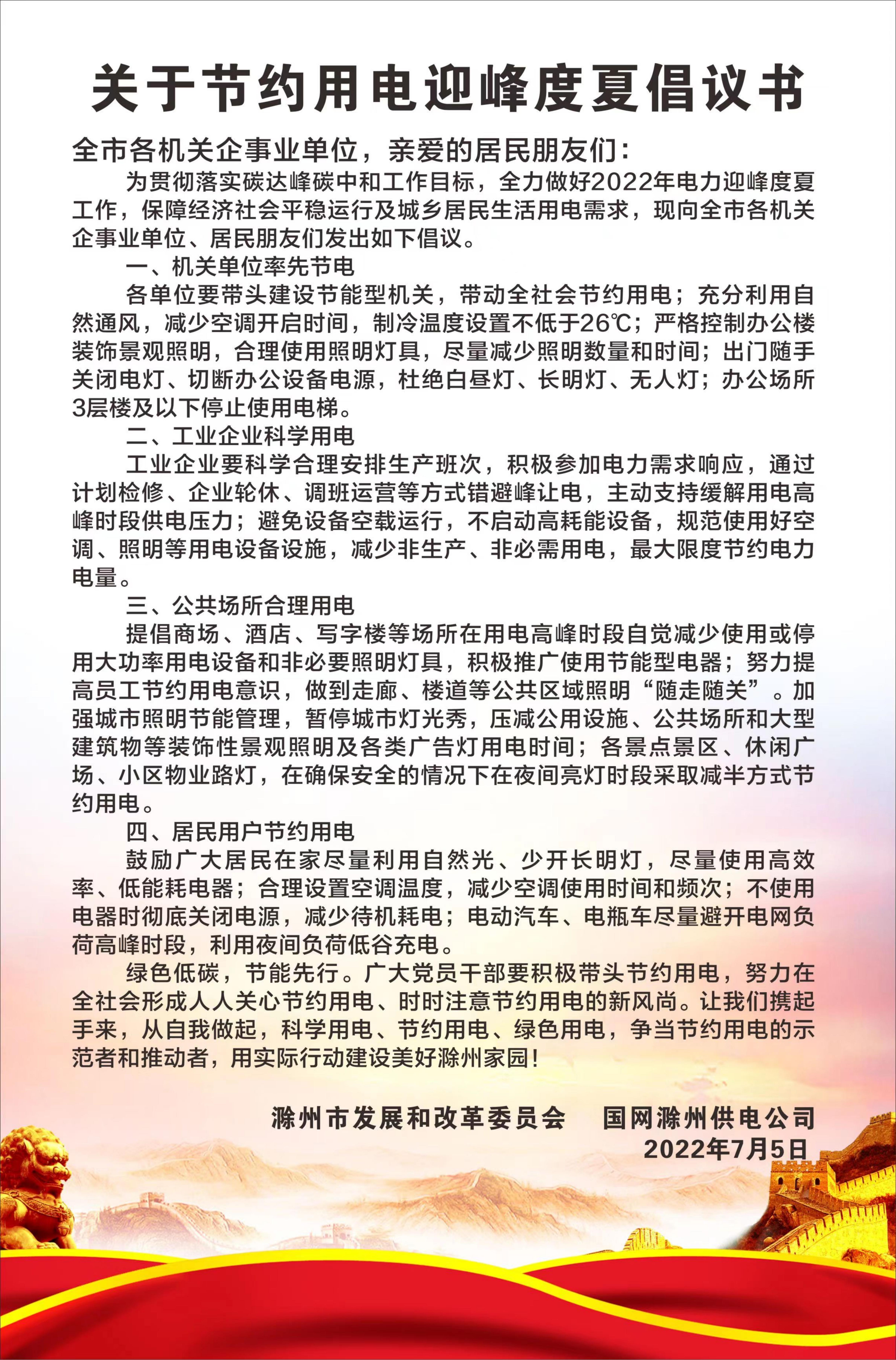 關于節(jié)約用電迎峰度夏倡議書