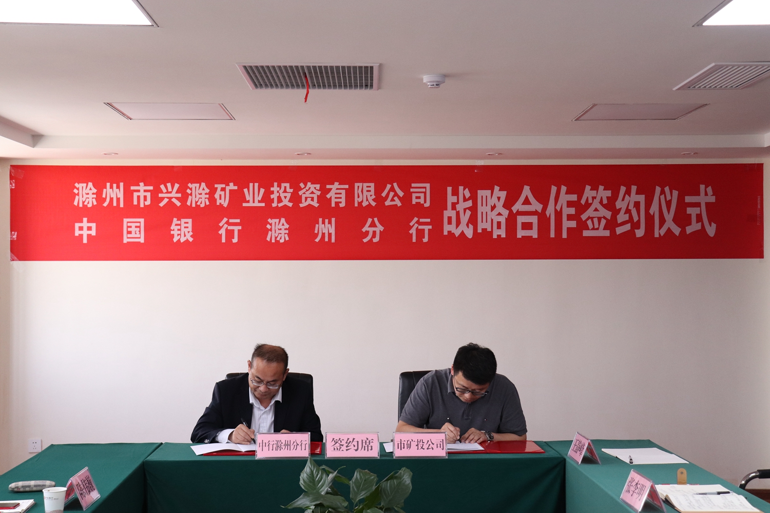 簽約儀式前,雙方進行了座談。鄭冬冬指出,市礦投公司在發(fā)展過程中,得益于中國銀行滁州分行的大力支持,在礦權(quán)收儲、礦山建設(shè)等方面,均呈現(xiàn)較好發(fā)展趨勢。