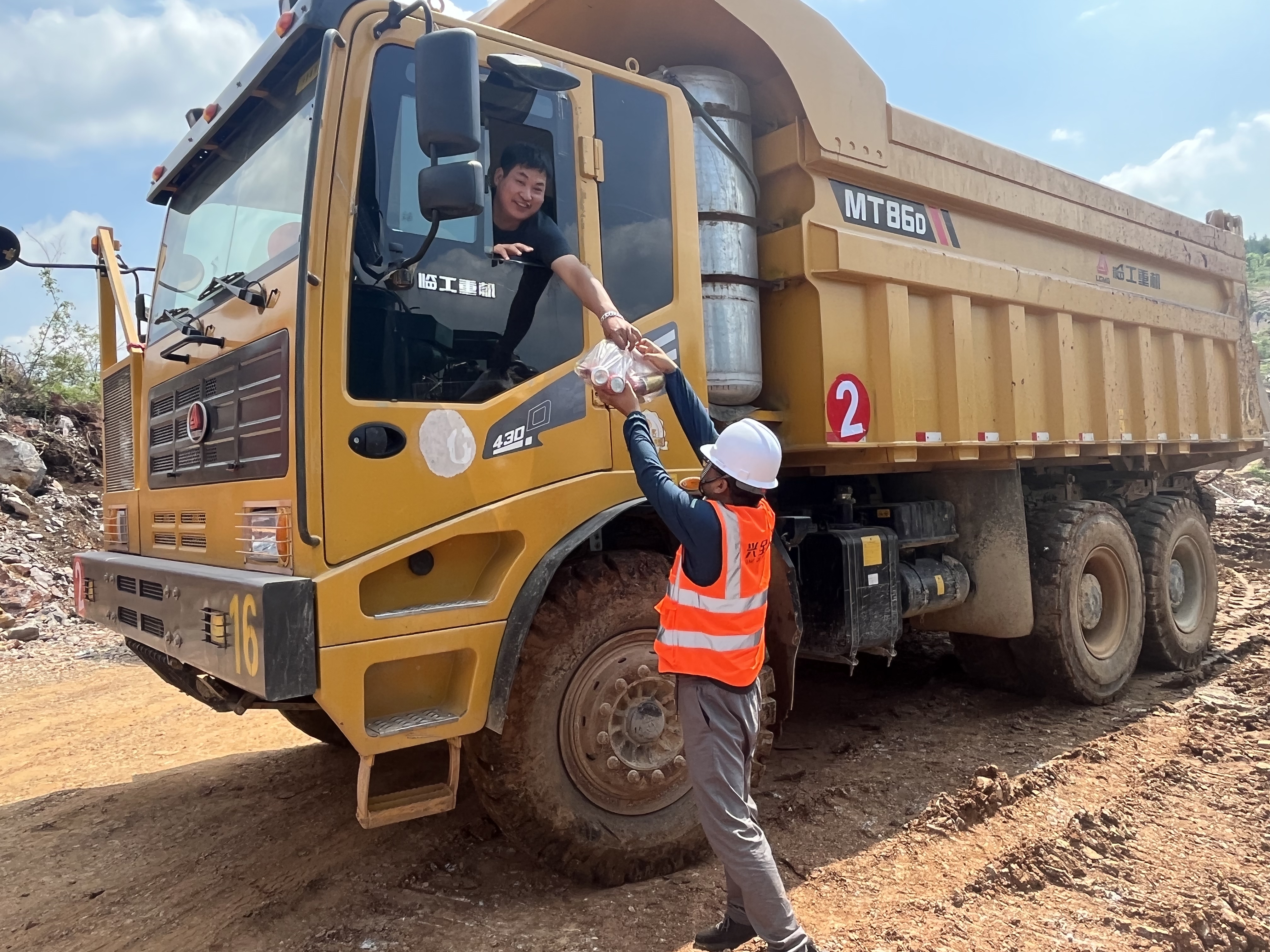活動中,公司總經(jīng)理陳昌富先后來到馬塘湖礦各裝車點、鉆孔作業(yè)平臺、磅房等地,為在高溫酷暑下堅守工作崗位的一線職工、挖機駕駛員、鉆孔作業(yè)人員、貨運司機等130余人送上夏日的清涼與問候,叮囑他們提高安全意識,注意個人安全防護的同時做好防暑措施,確保度過一個安全、健康、清涼的夏季。