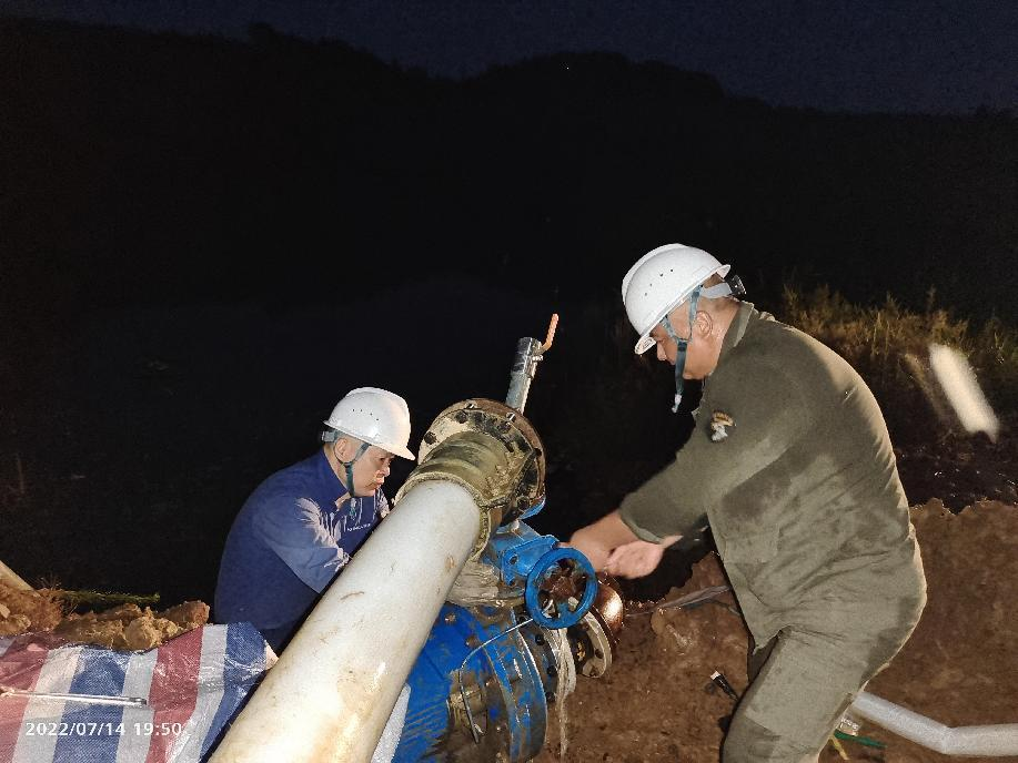 抗旱方案有了,可是要想把水從70米深的礦坑內(nèi)抽到地面,不但需要揚程特別高的水泵,還需要高規(guī)格長距離的水管和電纜,還有很多配套零部件要采購。旱情就是命令,抗旱就是責(zé)任,興天礦業(yè)副總經(jīng)理趙崗牽頭落實抗旱物資采購,親自指揮設(shè)備調(diào)運安裝,帶領(lǐng)公司抗旱突擊隊和社區(qū)干部深入礦坑,一起研究水泵需要多大功率安裝在什么地方、水管需要多粗從哪里下放、電纜需要多長從哪里接電等問題。方案制定好了,老百姓的水稻不能等,挖掘機第一時間進場整理場地,興天礦業(yè)和社區(qū)準(zhǔn)備的水泵、水管電纜等也迅速到位,抗旱突擊隊與社區(qū)干部群眾一起與時間賽跑,從早到晚緊張施工,一心想著的就是早點把水抽上去,盡量把旱情影響降到最低。