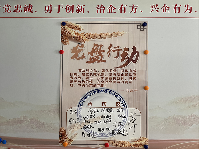 知行合一,積極參與,共做“勤儉節(jié)約”的踐行者。組織全體員工簽寫“光盤行動倡議書”,積極營造節(jié)約糧食、珍惜食物的氛圍。
