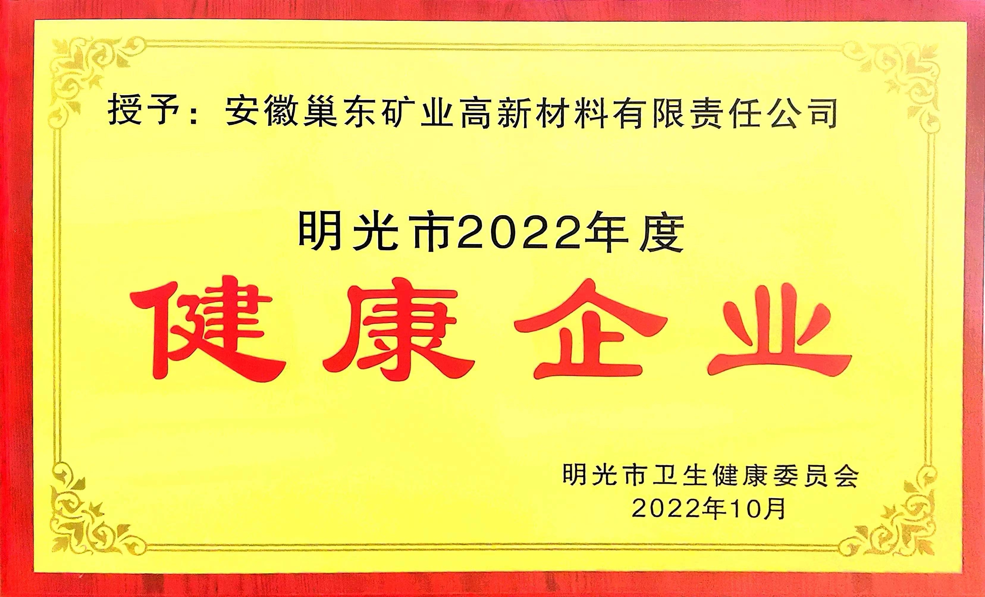 巢東礦業(yè)榮獲“2022年度明光市健康企業(yè)”榮譽稱號